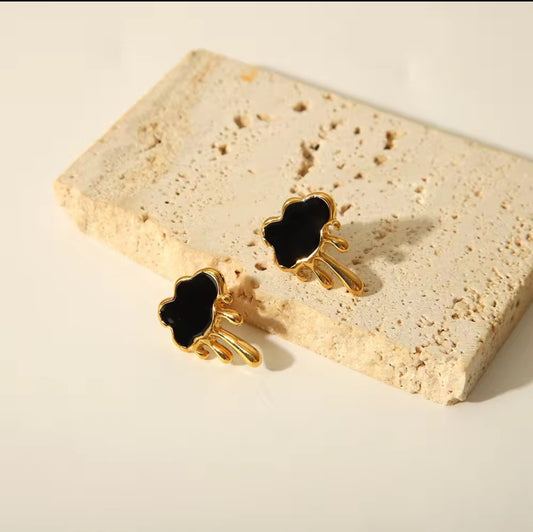 Gold Cloud Lava Black Earrings